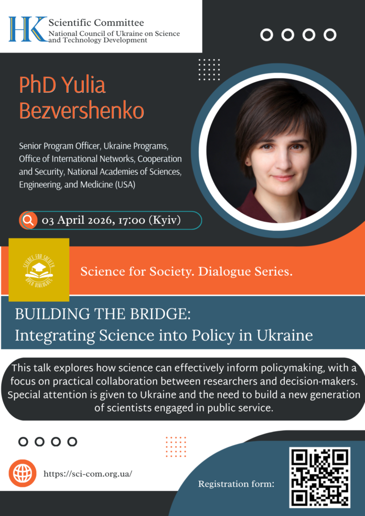 Під час заходу буде розглянуто, як наука може ефективно впливати на формування державної політики, а також практичні механізми взаємодії між дослідниками та особами, які ухвалюють рішення.
